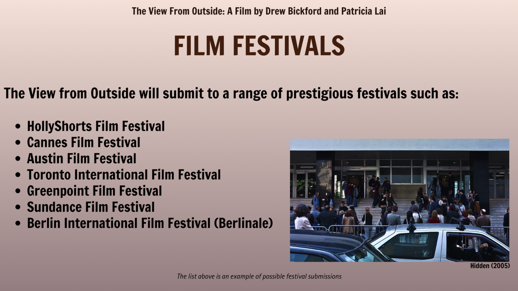 Film festivals are more than just glamorous events; they are essential gateways for filmmakers looking to gain critical recognition, network within the industry, and connect deeply with audiences who appreciate storytelling at its best. “The View from Outside” aims high, targeting an impressive array of festivals known globally for their influence and reputation.